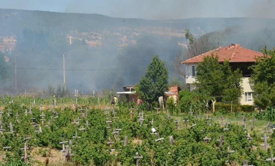 Tunçbilek yolu yakınında çıkan yangın kısa sürede kontrol altına alındı