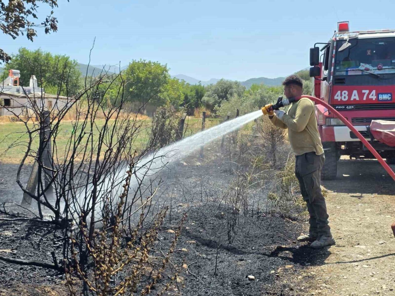 Yangın, Gökpınar Mahallesi kavşağı yakınlarında bir şahsa ait tarlada meydana geldi. Edinilen bilgiye göre, yangını fark eden vatandaşların 112 Acil Çağrı Merkezi’ne yaptığı ihbar üzerine bölgeye Muğla Orman Bölge Müdürlüğü ekipleri ile Muğla Büyükşehir Belediyesi İtfaiye Daire Başkanlığı ekipleri sevk edildi. Yangın yerine kısa sürede ulaşan ekipler, alevleri çevreye sıçramadan kontrol altına alarak tamamen söndürdü.