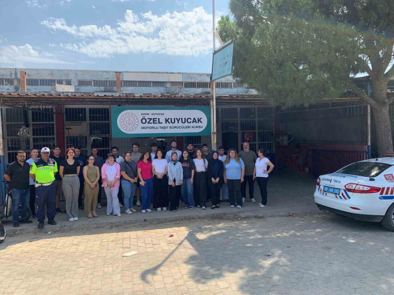 Aydın İl Jandarma Komutanlığı Trafik Şube Müdürlüğü koordinesinde görev yapan Trafik Jandarması ekipleri, Kuyucak ilçesindeki iki sürücü kursunda eğitim gören 85 öğrenciye yönelik trafik eğitimi gerçekleştirdi.