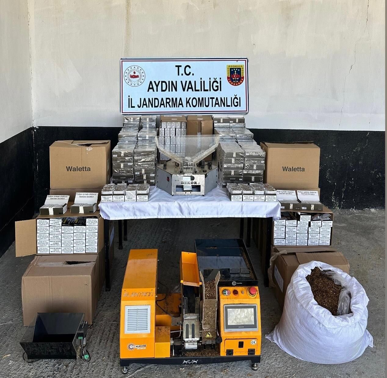 Aydın’ın Söke ilçesinde gerçekleştirilen operasyonda binlerce makaron ve kaçak tütün ele geçirildi.
