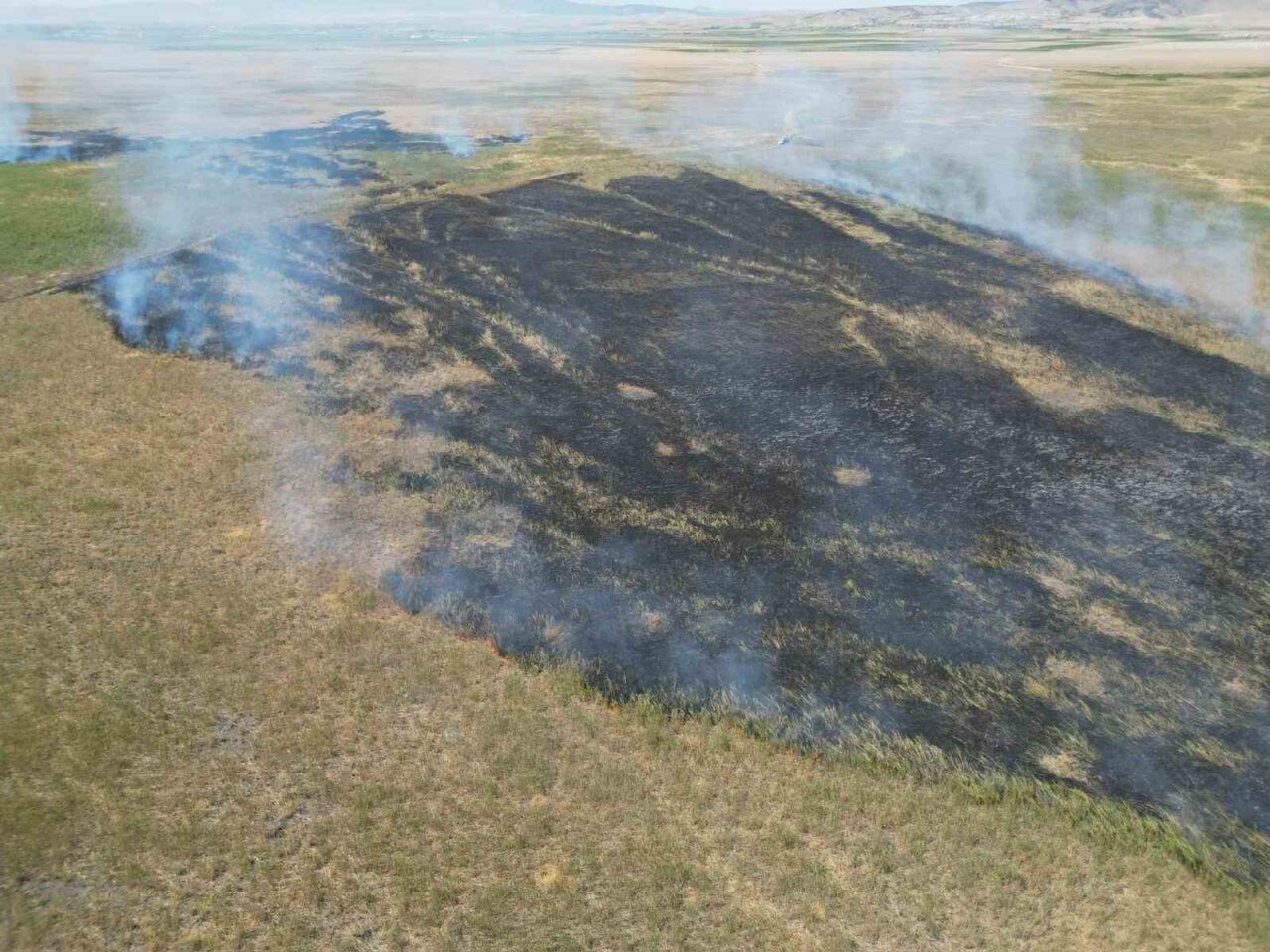 Afyonkarahisar’da bulunan Eber Gölü’nün çevresindeki otluk arazide çıkan yangına müdahale ediliyor.
