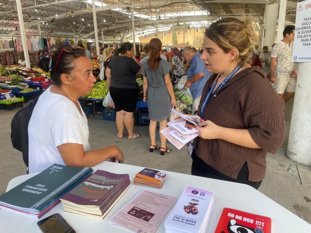 Müskebi’deki stant çalışmasına, Bodrum İlçe Emniyet Müdürlüğü Aile İçi ve Kadına Karşı Şiddetle Mücadele Büro Amirliği ekipleri de katıldı. Turgutreis Amiral Kafede kurulan stantta ise Türkçe ve Bodrum’u ziyaret eden yabancı konuklar ile ilçede yaşayan yabancı uyruklu kent sakinleri için hazırlanan İngilizce broşürler dağıtıldı.