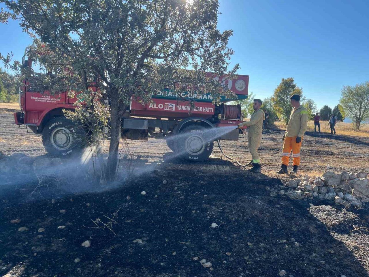 Anız yangını ormana sıçramadan söndürüldü