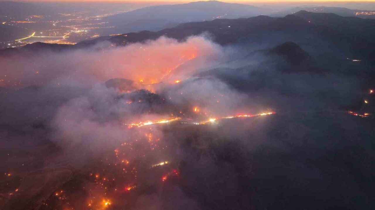Yangın bölgesi dron ile havadan görüntülendi. Görüntülerde vatandaşların yangın havuzlarına su takviyesi yaptığı anlar ve akşam saatlerinde ormanın içerisinde farklı noktalardan yükselen alevler yer aldı. Orman ekiplerinin ve arazözlerin yangına müdahalesi de görüntüledi.