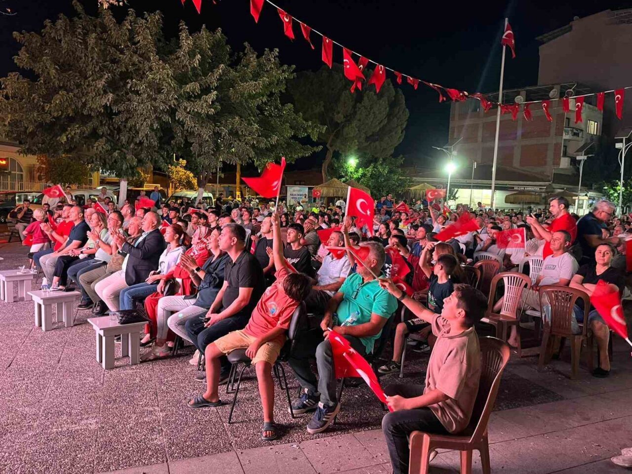 İncirliova’da vatandaşlar, Yahya Ümit Orbay Meydanı’na kurulan dev ekranda, A Milli Basketbol Takımının EuroBasket final maçını izledi.