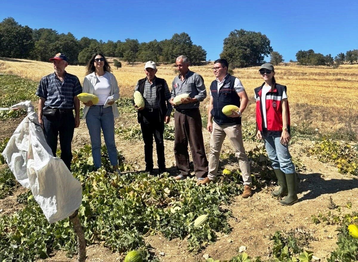 Kütahya’nın Emet ilçesi Göncek köyü’nde “Organik Göncek Kavunu” projesi çerçevesinde sertifikasyon işlemleri için proje paydaşlarına ait kavun ekili tarlalardan numuneler alındı.
