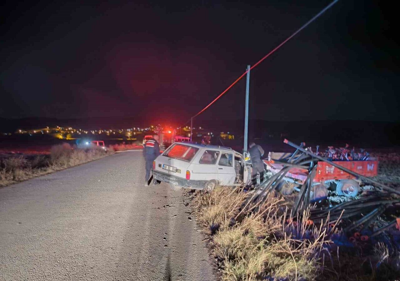 Otomobil su borusu yüklü traktör römorkuna çarptı: 2 yaralı