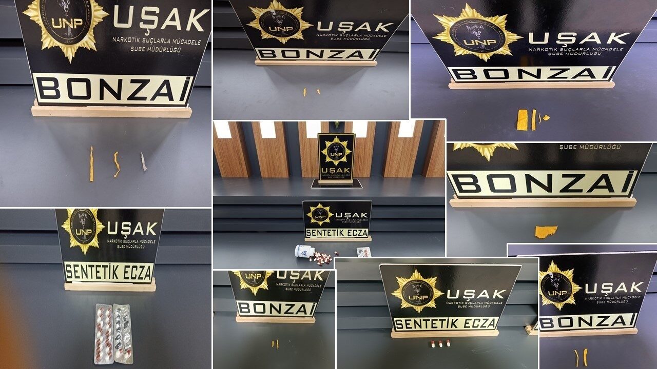 Uşak’ta yapılan operasyonlarda 151 adet kullanımlık A4 Sentetik Bonzai ve 64 adet sentetik ecza ele geçirildi.