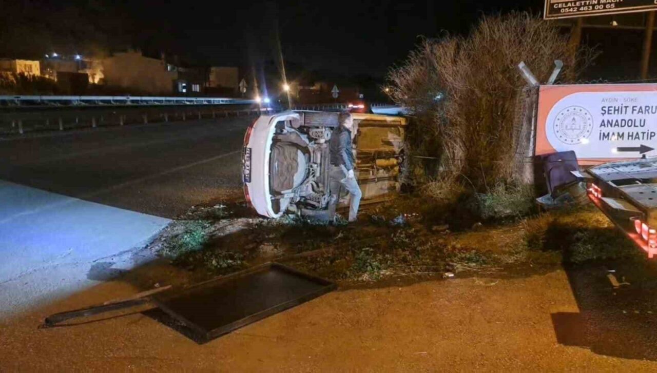 Aydın’ın Söke ilçesinde meydan gelen trafik kazasında otomobil yan yatarken, sürücü kazayı yara almadan atlattı.