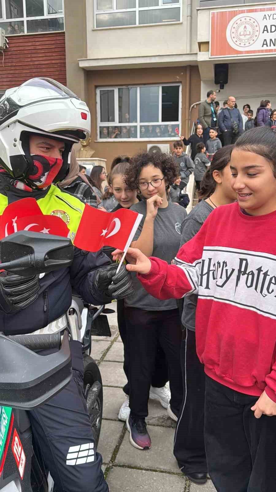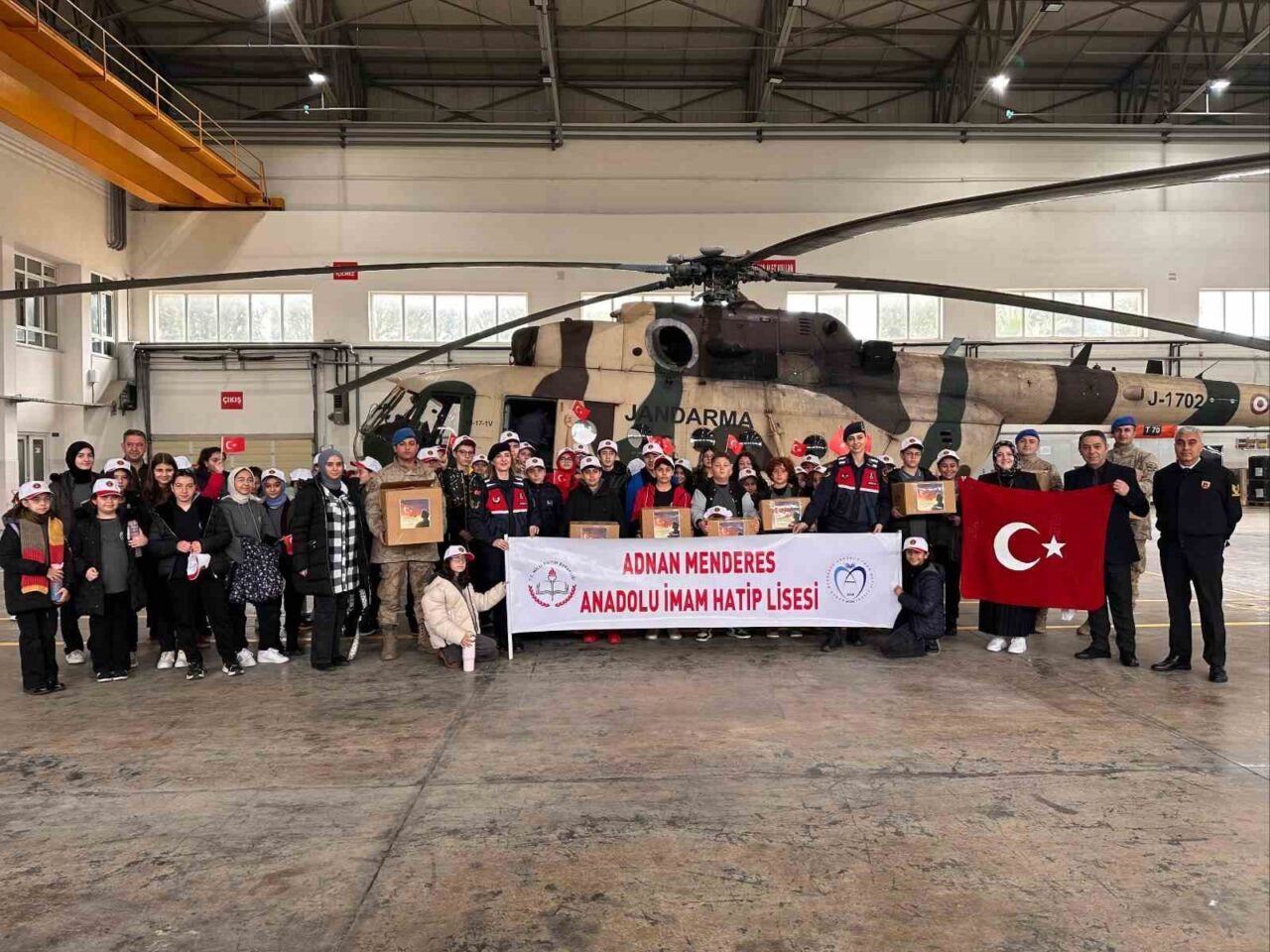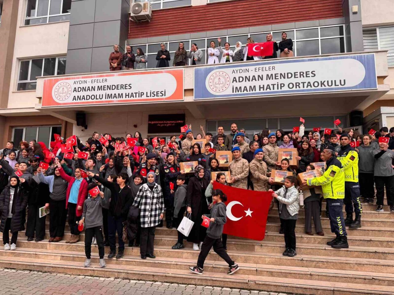 Efeler Adnan Menderes Anadolu İmam Hatip Lisesi öğrencileri, öğretmenleri ve velileri tarafından örnek bir sosyal sorumluluk projesi gerçekleştirildi. “Atkılar Takılsın Mehmed’im Isınsın” projesi kapsamında öğretmen, öğrenci ve veliler, Suriye Görev Gücü’nde görev yapan Mehmetçik için atkı ördü. Cumhuriyetin 101. yılı dolayısıyla 101 adet atkı ören gençler, hazırladıkları atkıları okul yönetimi ve öğretmenleriyle birlikte Aydın İl Jandarma Komutanlığı’na teslim etti. Ayrıca gerçekleştirilen teslim etkinliğinde öğrencilere jandarmanın tanıtımı yapılırken, öğrenciler Aydın Jandarma Filo Komutanlığı’nda misafir edildi. Öğrencilerin örnek davranışı takdir toplarken, etkinlik sonunda öğrencilere Türk bayrağı ve jandarma şapkası hediye edildi.