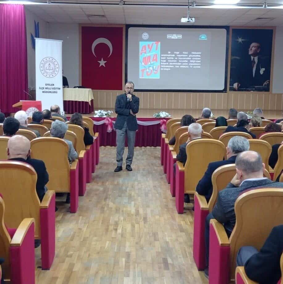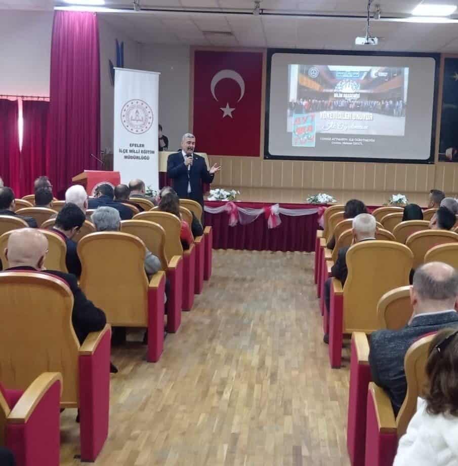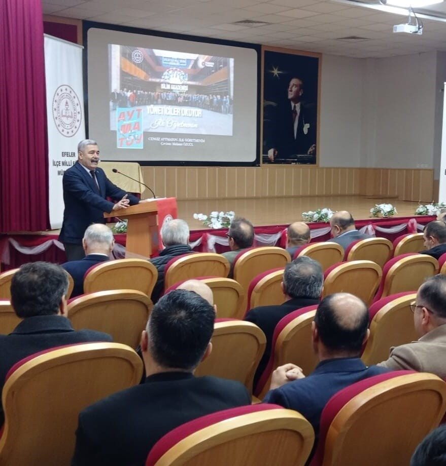 Efeler İlçe Milli Eğitim Müdürlüğü Bilim Akademisi tarafından yürütülen proje toplantısının açılış konuşmasını gerçekleştiren Efeler İlçe Milli Eğitim Müdürü Hakan Özcan; “Türkiye Yüzyılı ışığında Eğitim Yöneticilerimiz Okuyor projesi, Türkiye’nin geleceğini şekillendirecek eğitim yöneticilerimizin bilgi ve donanımlarını artırmayı amaçlayan bir projedir. Proje, Türkiye’nin eğitim sistemine yön veren okul müdürleri ve diğer eğitim yöneticilerinin, belirlenen kitapları okuyarak kendi kişisel gelişimlerini sağlamaları ve bu bilgi birikimlerini eğitimdeki başarılara dönüştürmeleri için tasarlanmıştır. Proje kapsamında genellikle farklı konularda liderlik, eğitim felsefesi, yenilikçi öğretim yöntemleri, psikolojik ve pedagojik yaklaşımlar gibi alanlarda kitaplar belirledik. Eğitim yöneticilerimizin bu kitapları okuyup, tartışmalar yapmaları rol modellik görevlerini yerine getirmeleri ve kendi işyerlerinde uygulamalı olarak kullanabilecekleri yol ve yöntemler geliştirmeleri beklenen sonuçlardandır. Bu tür projelerle ilçemizde, eğitimin kalitesini artırmak, yöneticilerimizin liderlik becerilerini güçlendirmek ve eğitimde daha yenilikçi bir yaklaşım benimsemek için oldukça önemli bir adım olduğunu düşünüyor bu anlamda projeye katkı ve destekleriniz için her birinize şükranlarımı sunuyorum” dedi.