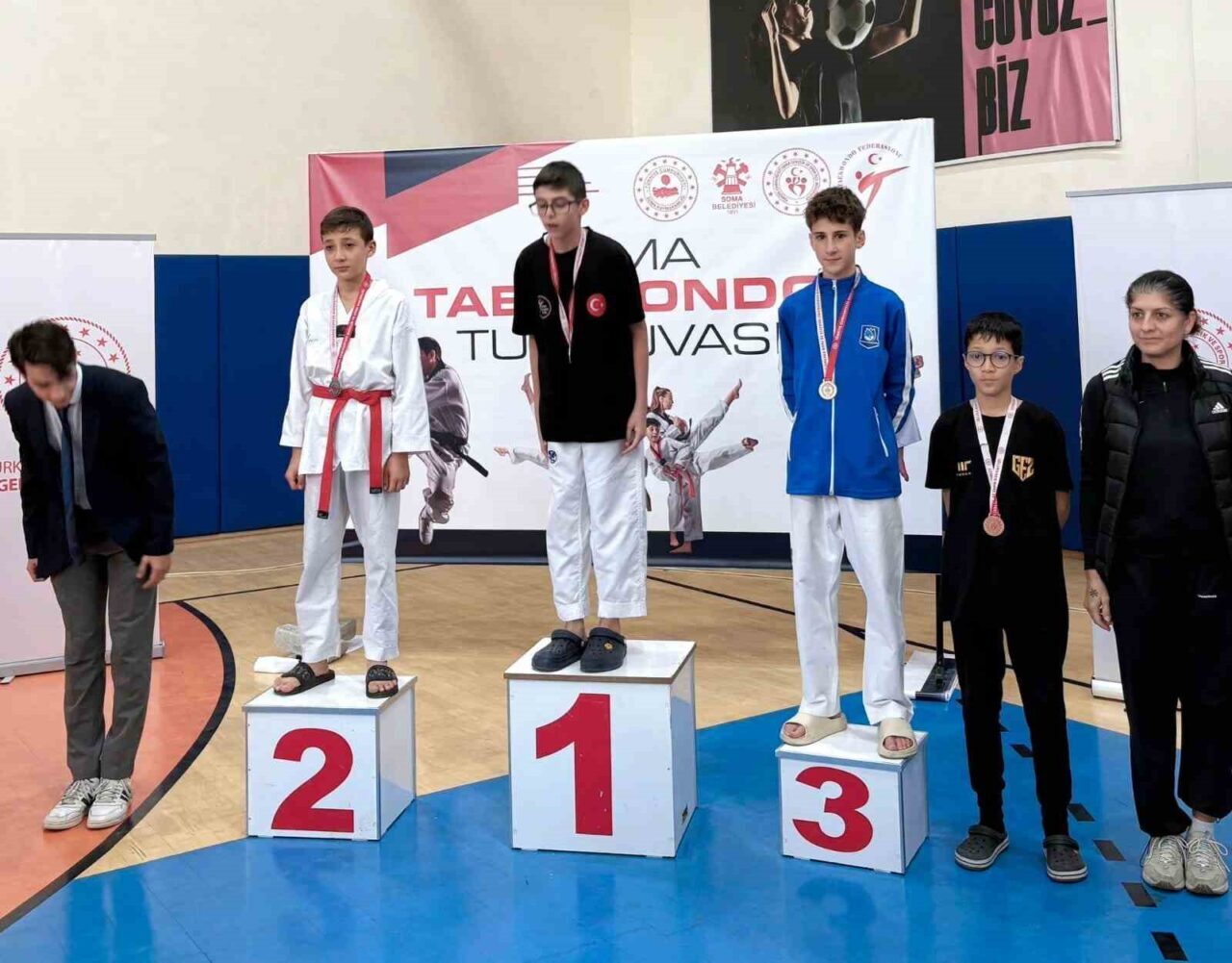 Yunusemre Belediyespor’un tekvandocuları, Soma Kaymakamlığı Tekvando Cumhuriyet Kupası’nda 2 altın, 1 gümüş ve 1 bronz madalya kazanarak kızlarda takım halinde ikincilik elde etti.