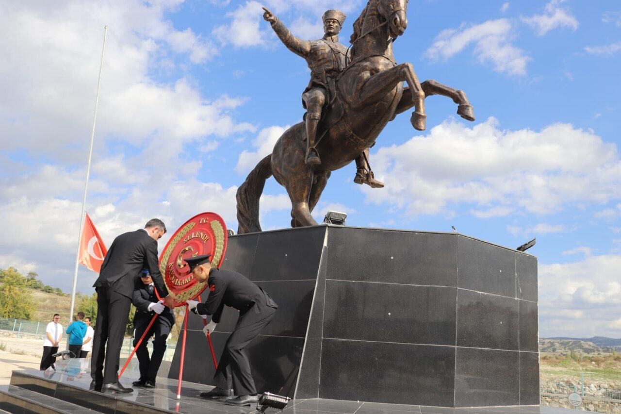 Manisa’nın Selendi ilçesinde, cumhuriyetin kuruluşunun 102’nci yıl dönümü kutlamaları kapsamında Atatürk Anıtı’na çelenk sunma töreni düzenlendi.