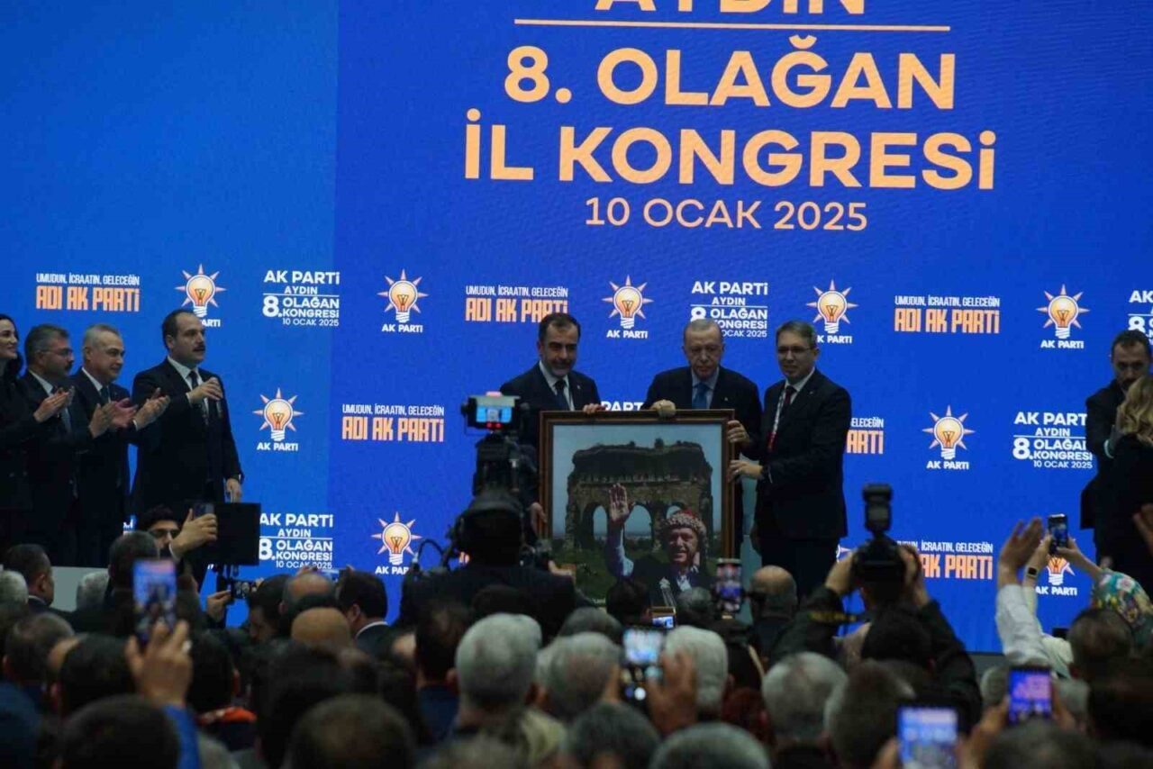 Kongre sonunda AK Parti Aydın İl Başkanlığı görevini devreden Gökhan Ökten ve yeni İl Başkanı olarak atanan Mehmet Erdem tarafından, Cumhurbaşkanı Recep Tayyip Erdoğan’a üzerinde Tralleis Antik Kenti ve kendi fotoğrafının yer aldığı tablo hediye edildi.