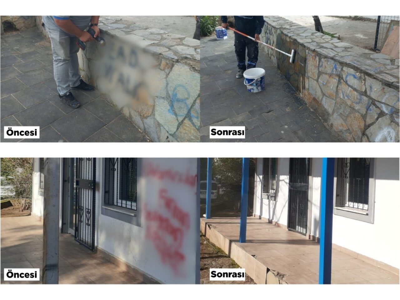 Bodrum Belediyesi Destek Hizmetleri Müdürlüğü, ortak yaşam alanlarının daha temiz ve daha düzenli olması için çalışmalarını aralıksız sürdürüyor. Destek Hizmetleri Müdürlüğü’ne bağlı Boya Badana Birimi tarafından kent genelinde çevre düzeni ve estetik görünümün korunması amacıyla çalışmalar gerçekleştiriliyor. İlçe genelindeki park, duvar, kamu binaları gibi alanlara yapılan resimler, yazılar, karalamalar ve boyamalar belediye ekipleri tarafından temizleniyor. Yeniden boyanarak düzenli bir görünüme kavuşturulan alanlar kent estetiğine uygun hale getiriliyor. Çalışmalar kapsamında son 6 ay içerisinde 29 duvar yazısı silindi. Belediye ekipleri, daha düzenli, temiz ve sürdürülebilir kent yaşamı için çalışmalarına devam edecek.