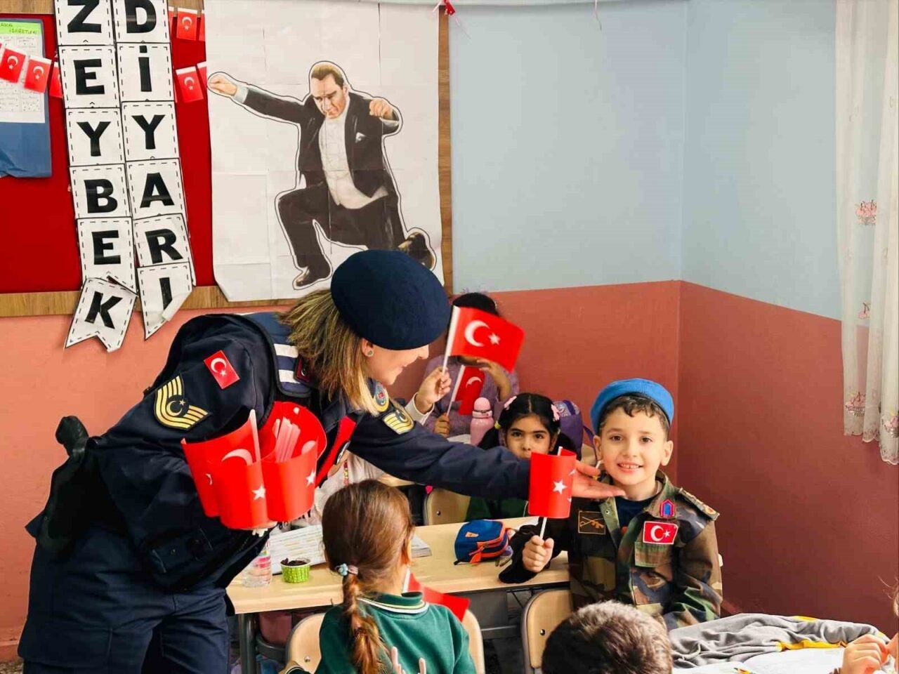 Aydın’ın Efeler ve Kuyucak ilçelerinde birinci sınıf öğrencilerini ziyaret eden jandarma ekipleri, minik öğrencilere “j” harfini öğretti.