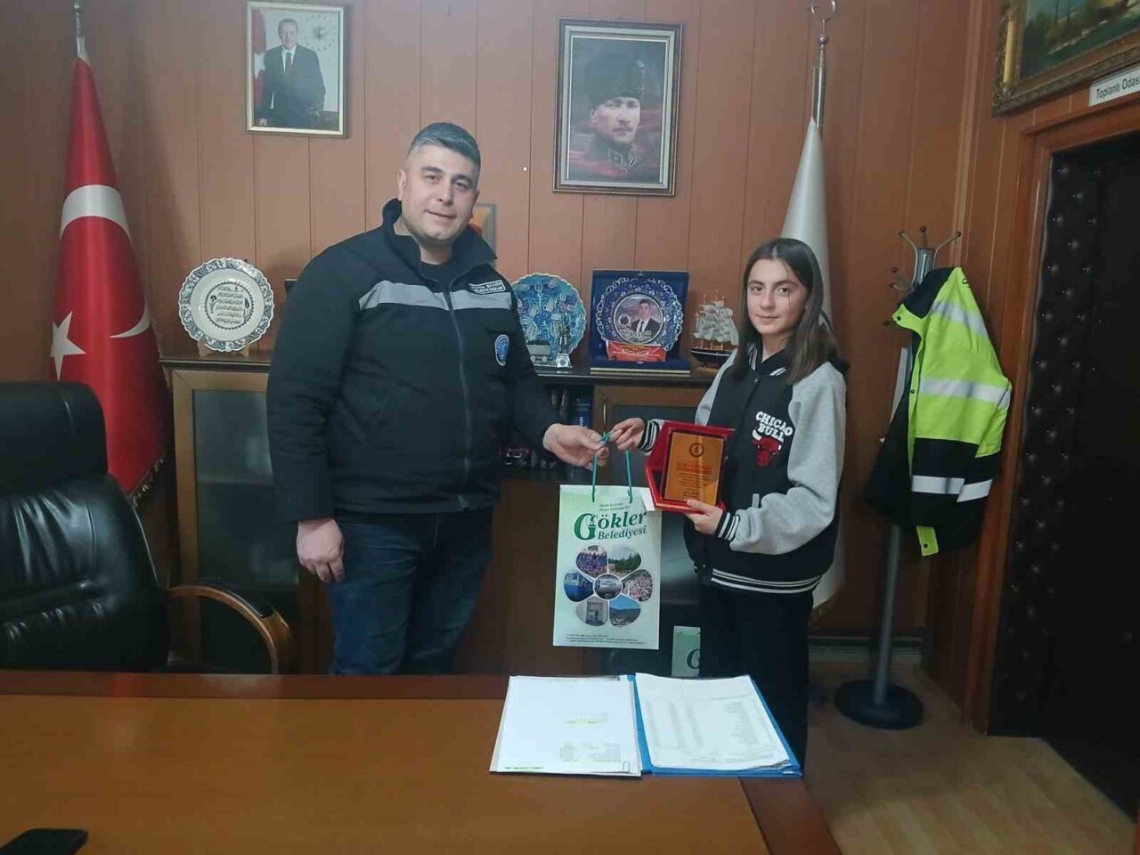 İl birinciliği sonrası Gökler Belediye Başkanı Kerim Şahin’i makamında ziyaret eden İlkay Özdemir, başarısıyla büyük takdir topladı. Başkan Şahin, ziyarette İlkay Özdemir’i ödüllendirerek, “Beldemiz Hürriyet Adalet Çoban Ortaokulu öğrencilerinden sevgili İlkay Özdemir, İstiklal Marşı’mızın eşsiz anlamını yürekten hissederek en güzel şekilde okuma başarısı göstermiş ve il birincisi olmuştur. Kendisini, ailesini ve öğretmenlerini gönülden tebrik ediyorum. Türkiye genelinde yapılacak yarışmada da başarılarının devamını diliyorum. İlkay’ın bu başarısı, beldemiz için büyük bir gurur kaynağıdır” dedi.