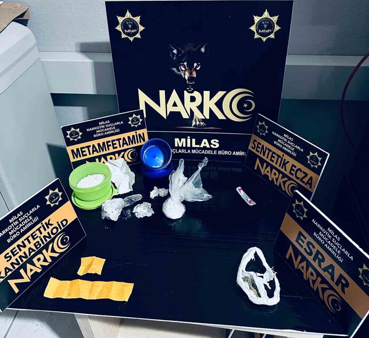 Muğla’nın Milas, Dalaman, Yatağan, Ula ve Menteşe ilçelerinde il dışından uyuşturucu madde getireceği değerlendirilen şahısların; araç ve ikametlerinde yapılan aramalarda; 2 kilo 100 gram metamfetamin maddesi, 1 kilo 119 gram skunk maddesi, 3 gram esrar, 2 adet A4 kağıda emdirilmiş sentetik kannabinoid (bonzai) maddesi, 11 adet fişek ve suçtan elde edildiği değerlendirilen 47 bin 075 TL para ele geçirildi.
