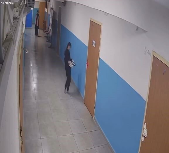 Çalıca Ortaokulu öğrencisi Gülçin Miray Karaman, temizlik yapılan koridoru kirletmemek için ayakkabılarını eline alıp çoraplarıyla yürümesiyle takdir topladı.