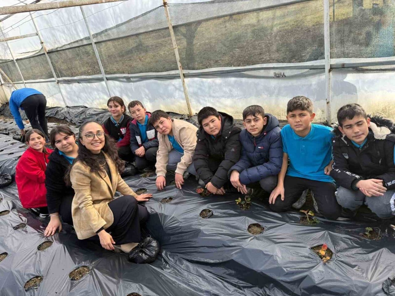 Manisa’nın Gördes ilçesine bağlı Çiğiller İlköğretim Okulu bahçesinde, “Sevgimizi Seramızda Büyütüyoruz” projesi kapsamında 150 metrekarelik alanda kurulan serada çilek dikimi gerçekleştirildi.