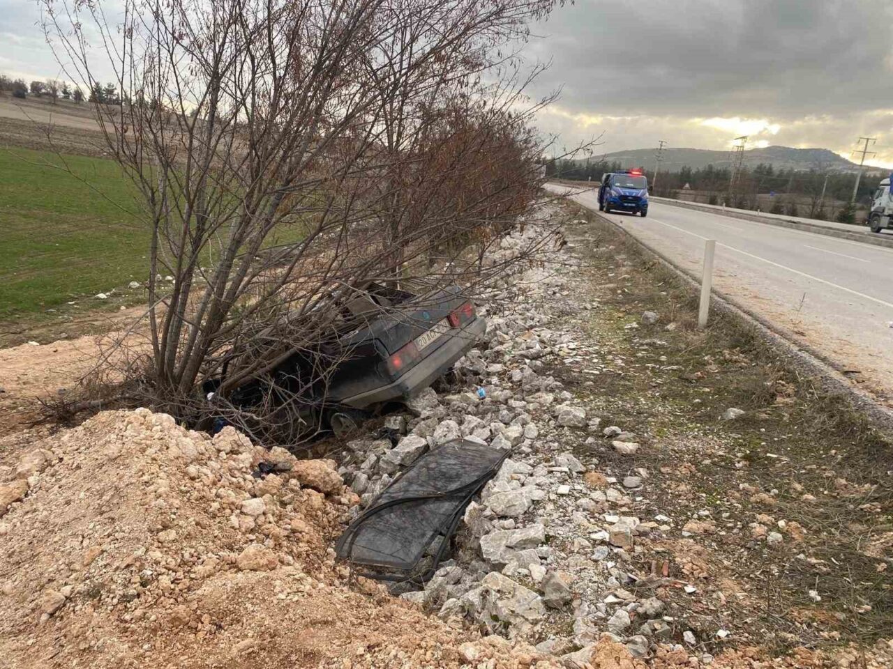 Kazayı gören diğer sürücülerin ihbarı üzerine gölgeye jandarma ve sağlık ekipleri sevk edildi. Maddi hasar oluşan araçtan kendi imkanlarıyla çıkmayı başaran sürücü Ş.A.A., sağlık ekipleri tarafından olay yerinde yapılan ilk müdahalesinin ardından ambulansla Çal Devler Hastanesine sevk edildi. Tedavisine başlanılan yaralı sürücü, tedbir amacıyla Denizli’deki daha kapsamlı bir hastaneye nakledildi. Şarampoldeki araç çekici yardımıyla bölgeden uzaklaştırılırken, kazayla ilgili soruşturma başlatıldı.