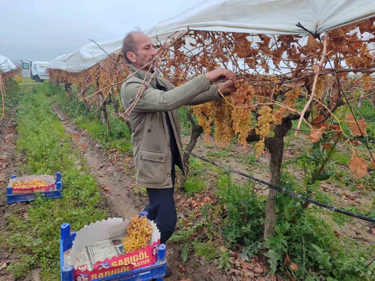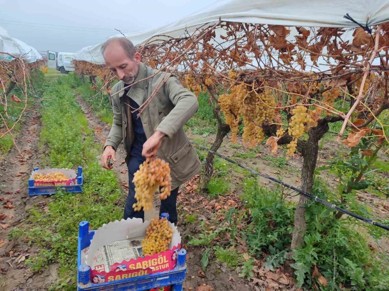 Manisa’nın Sarıgöl ilçesinde bağlarda uygulanan örtü altı sistemi sayesinde en fazla 3 ayda tamamlanan üzüm sezonu artık 6-7 ay boyunca devam ediyor. Ocak ayının ortasında olunmasına rağmen Manisa’da hala örtü altında kesilmeyi bekleyen binlerce ton üzüm bulunurken, bu durum Türkiye’nin dış pazardaki rekabet gücünü de artıyor.