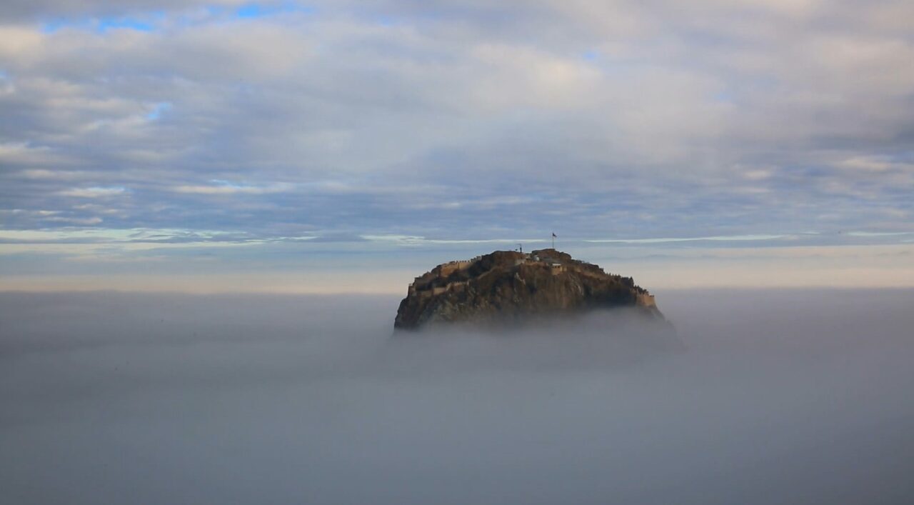 Sis bulutu altındaki tarihi Karahisar Kalesi mest etti