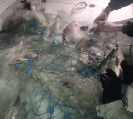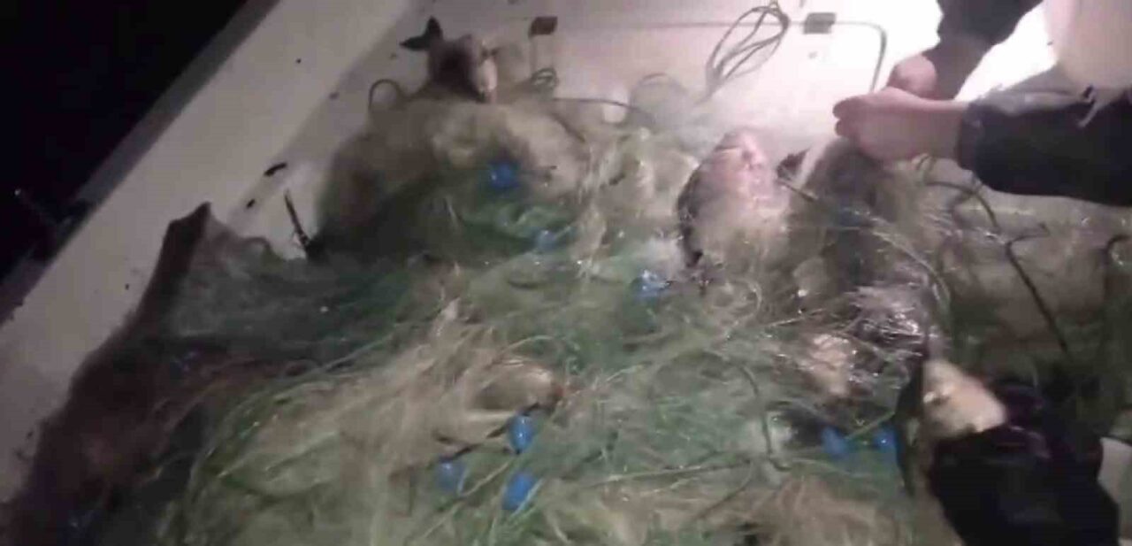 Denizli’nin Pamukkale ilçesinde devam eden av yasağı kapsamında yapılan denetimlerde Gökpınar Barajı Gölüne bırakılan binlerce metre uzunluğundaki kaçak avlar toplanıyor.