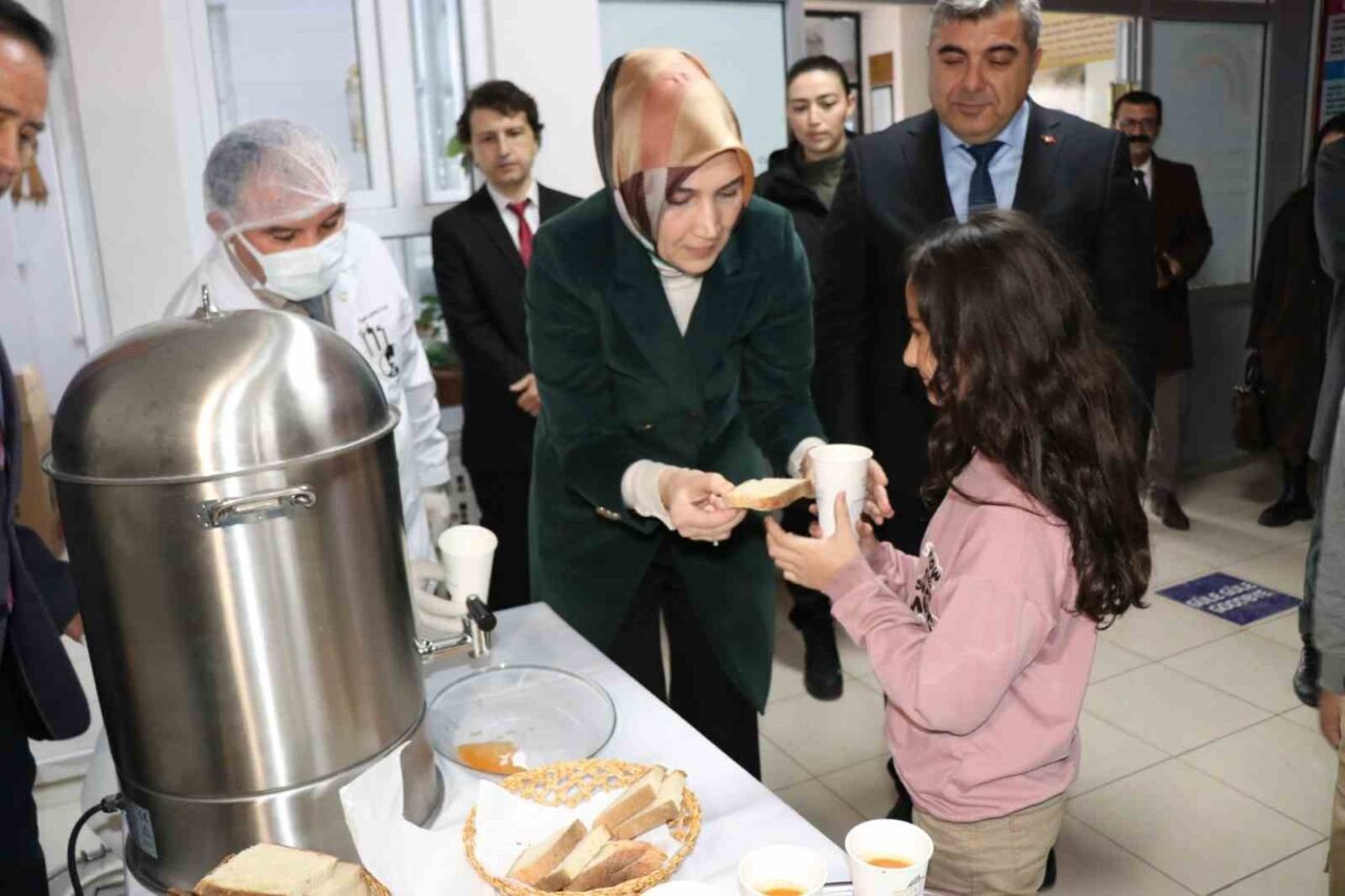 Öğrencilere kendi elleriyle tarhana çorbası ve patatesli köy ekmeği ikramında bulunan Vali Doç. Dr. Kübra Güran Yiğitbaşı anne sıcaklığıyla öğrencilerin kalplerine dokundu. Vali Yiğitbaşı, öğrencilerle birlikte oturup yöresel lezzetlerden tarhana çorbası ve köy ekmeğinin tadına baktı. Akabinde sınıfları ziyaret eden Yiğitbaşı, öğrencilerin derslerine iştirak ederek keyifli bir sohbet eşliğinde öğrencilerin merak ettikleri soruları yanıtladı. Ziyaret, günün anısına çektirilen hatıra fotoğrafı ile sona erdi.