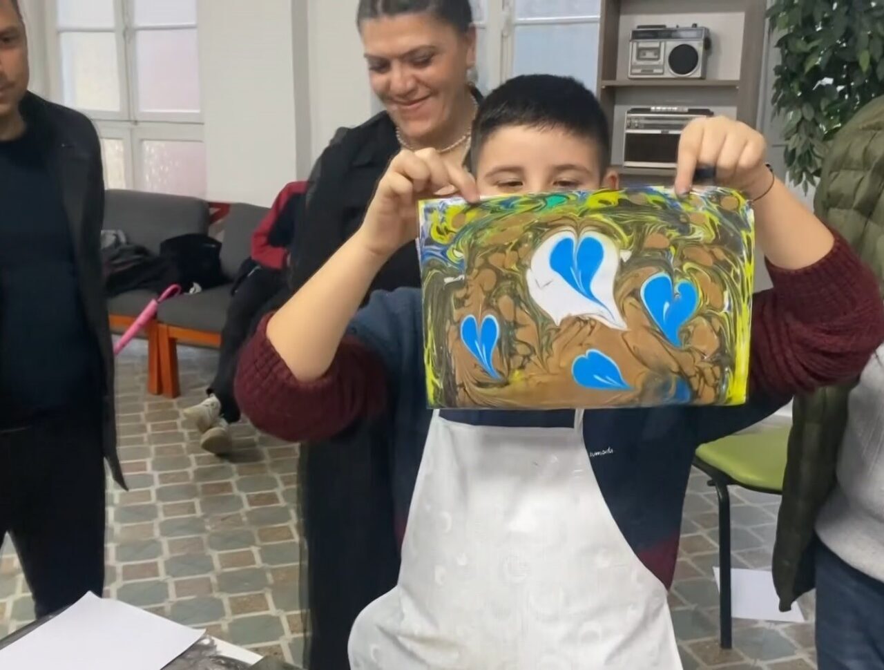 Etkinlik kapsamında Resim Öğretmeni Esma Gül Aydın, öğrencilere boyama teknikleri hakkında bilgi verdi. Öğrencilere boya ve fırça kullanımı ile ilgili rehberlik yaparak, sanat çalışmalarında onları yönlendirirken, öğrenciler, etkinlik sonunda ebru çalışmaları ve çeşitli el sanatları ile bireysel eserler ortaya koydu.