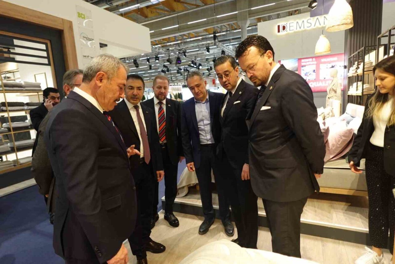 Denizli Sanayi Odası Yönetim Kurulu Başkanı Selim Kasapoğlu, Almanya’nın Frankfurt kentinde düzenlenen ve ev tekstili sektöründe dünyanın önemli fuarları arasında yer alan Heimtextil Fuarında yerini alan Denizlili sanayicileri yalnız bırakmadı. Denizli ev tekstili ürünlerinin 14-17 Ocak 2024 tarihler arasında dünyaya tanıtılacağı fuarda stant açan 69 Denizli firmasına başarılar dileyen Kasapoğlu’na DSO Yönetim Kurulu Başkan Yardımcısı Osman Uğurlu da eşlik etti. Denizli milletvekili Şeref Arpacı, Denizli Ticaret Odası Uğur Erdoğan ve DENİB Başkanı Hüseyin Memişoğlu ile birlikte stantları gezen DSO Başkanı Kasapoğlu, firmaların talep ve beklentileri hakkında görüş alışverişinde bulundu.