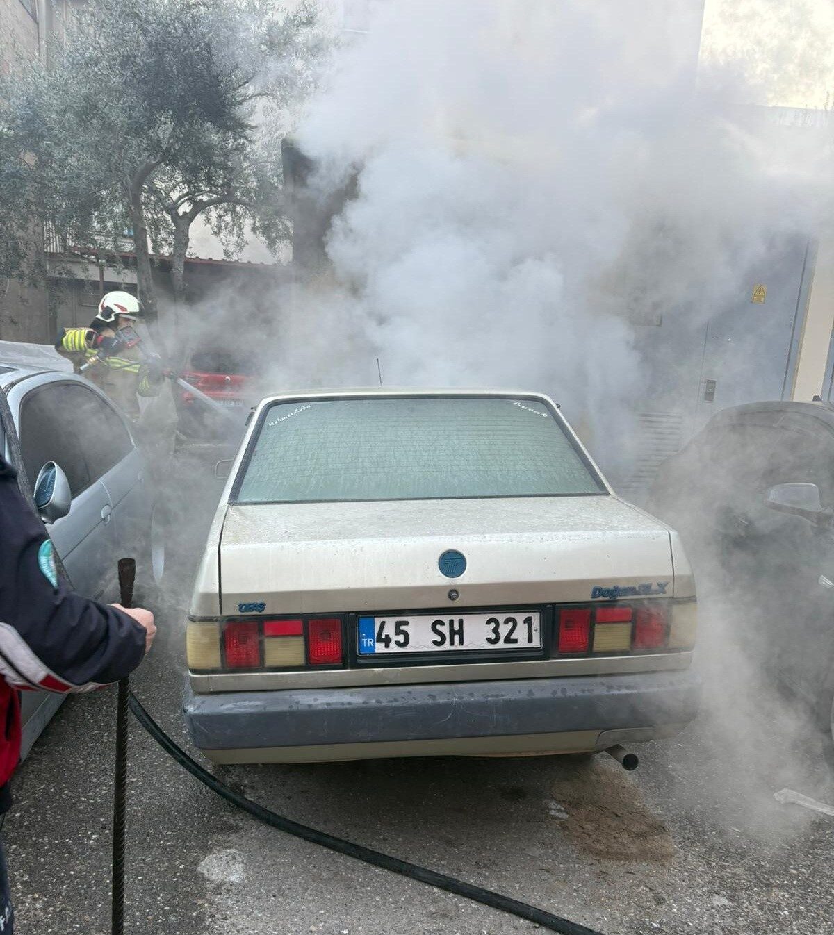 Salihli’de yangın paniği: Park halindeki 2 otomobil yandı