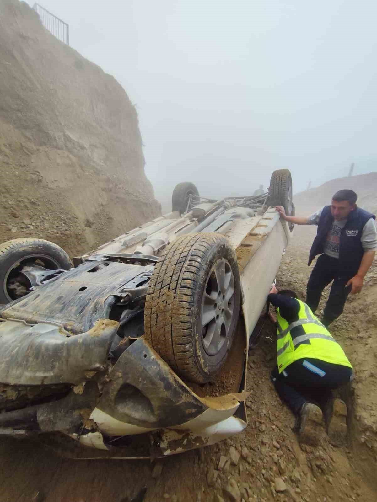 Denizli’nin Buldan ilçesinde direksiyon hakimiyetini kaybeden sürücü, DESKİ tarafından açılan çukura düşerek ters takla attı. Kaza sonucunda sürücü yaralandı.