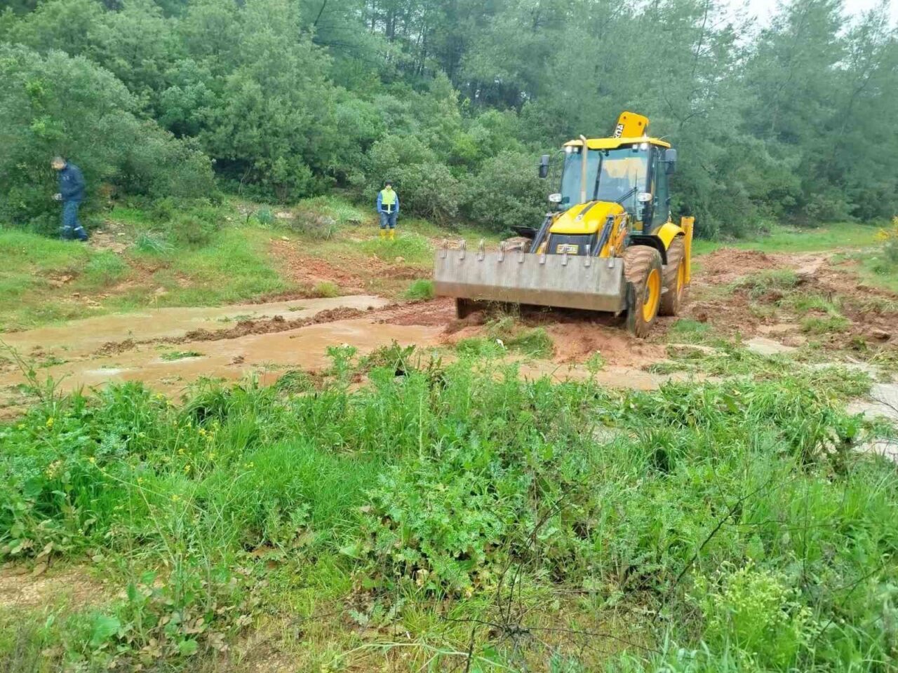 Didim’de etkisini gösteren kuvvetli yağışlarda, Didim Belediyesi ekipleri görev başında olmaya devam ediyor.
