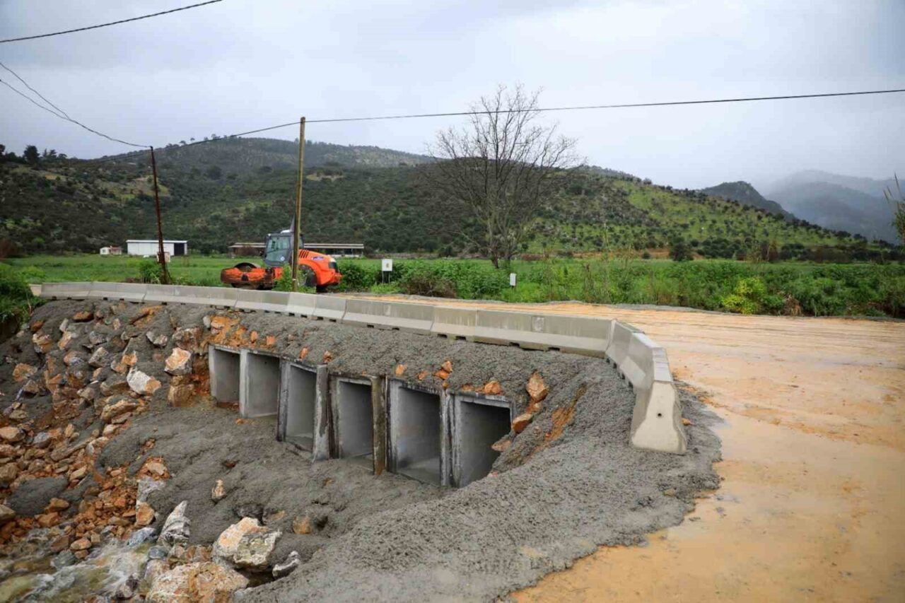 Milas’ta üç mahalleyi birbirine bağlayan ve yoğun yağış nedeniyle hasar gören köprü Muğla Büyükşehir Belediyesi ekiplerinin 26 saatlik çalışmasıyla yeniden ulaşıma açıldı.