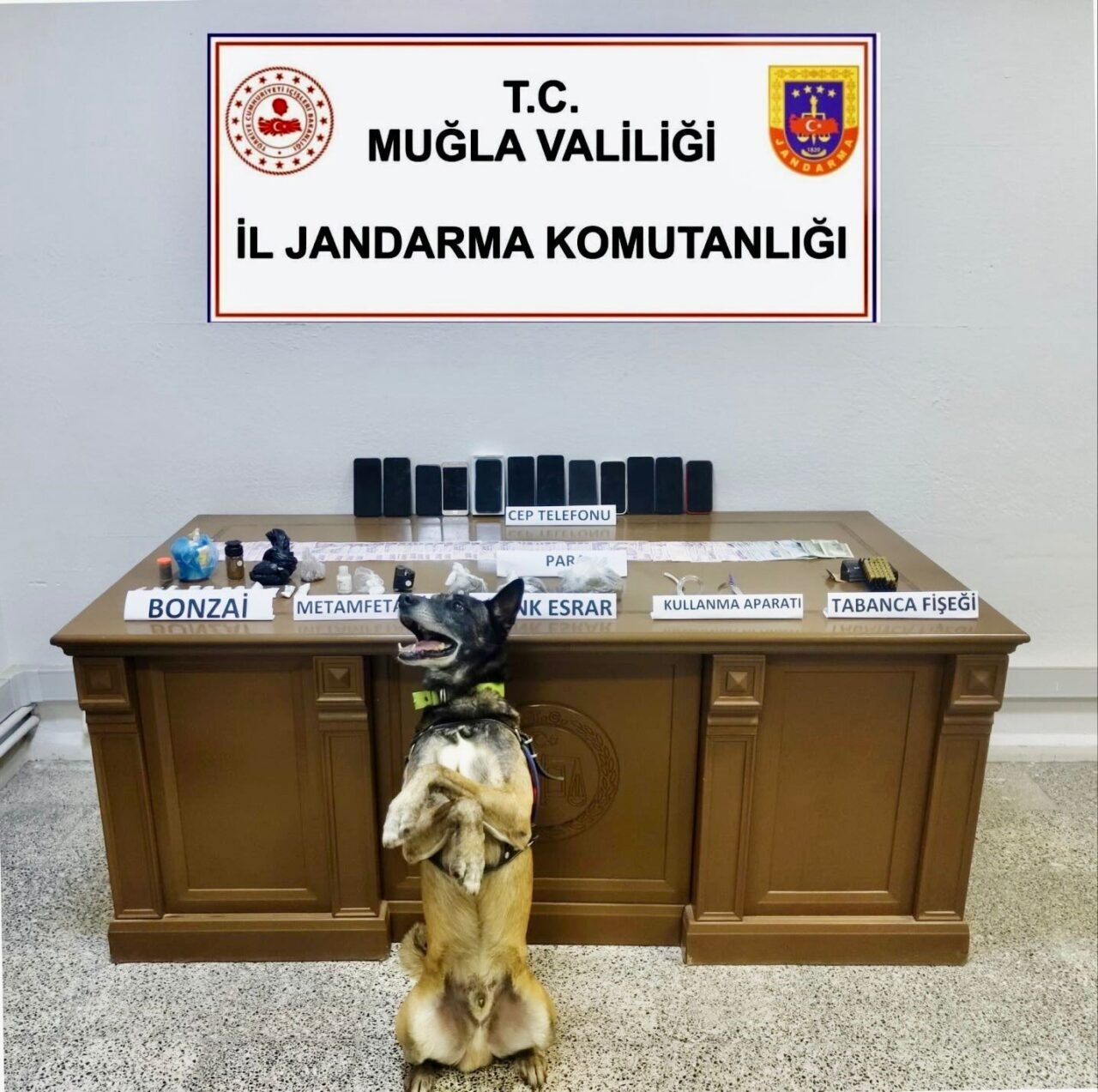 Bodrum İlçe Jandarma Komutanlığı ekiplerince uyuşturucu madde arama köpeği eşliğinde gerçekleştirilen aramalarda, şüphelilere ait ev ve araçlarda, 330 gram bonzai, 84 gram metamfetamin, 92 gram skunk, 2 adet uyuşturucu kullanma aparatı, 1 paket sarma kağıdı, 35 adet fişek, 200 dolar ve 24 bin 939 TL nakit para ele geçirildi. Ele geçirilen nakit paranın suçtan elde edildiği değerlendi. İşlemlerinin ardından adliyeye sevk edilen 7 şüpheli, tutuklanarak cezaevine gönderildi.