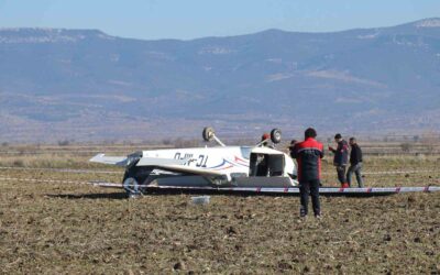 ISPARTA’DAN HAVALANAN EĞİTİM UÇAĞI, DENİZLİ’NİN ÇAL İLÇESİNE BAĞLI İSABEY MAHALLESİ’NE SERT İNİŞ YAPTI. TARLAYA TERS BİR ŞEKİLDE DÜŞEN UÇAĞIN PİLOTU YARALANDI.