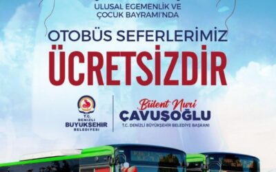 Denizli Büyükşehir Belediyesi, 23 Nisan Ulusal Egemenlik ve Çocuk Bayramı coşkusunun tüm şehirde doyasıya yaşanması amacıyla belediye otobüslerini vatandaşların hizmetine ücretsiz olarak sunacak. Denizli Büyükşehir Belediyesi, 23 Nisan Ulusal Egemenlik ve Çocuk Bayramı dolayısıyla vatandaşların ve özellikle çocukların bayram etkinliklerine, kutlama alanlarına ve parklara çok daha rahat ve huzurlu bir şekilde ulaşabilmeleri amacıyla belediye otobüslerini…